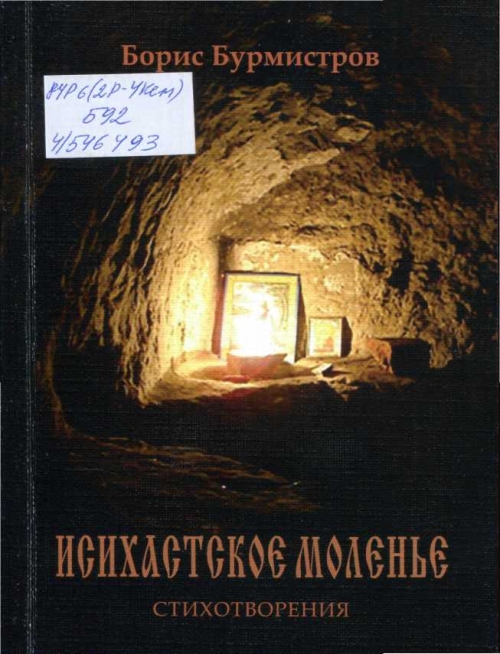 Бурмистров, Б. В. Исихастское моленье. 70 новых стихотворений (2015-2016) / Б. Бурмистров. - Кемерово: Азия-Принт, 2016. – 78 с. - 16+ ОТДЕЛ ХРАНЕНИЯ ОСНОВНОГО ФОНДА. КРАЕВЕДЧЕСКИЙ ФОНД; Шифр 84Р6(2Р-4Кем); Б92; 4/546494; 4/546495; 4/546493
