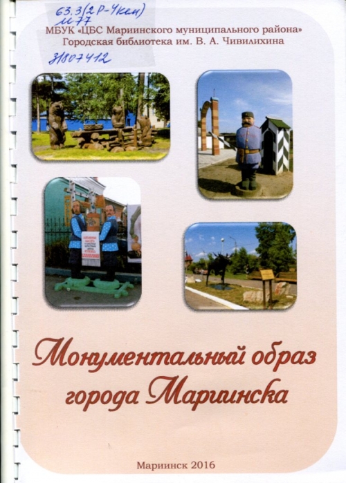 Монументальный образ города Мариинска: сборник статей, посвященный 160-летию г. Мариинска / МБУК «ЦБС Мариинского муниципального района», Городская библиотека им. В.А. Чивилихина ; сост. А.П. Першина. - Мариинск: [б. и.], 2016. - 38 с. ОТДЕЛ БИБЛИОТЕЧНОГО КРАЕВЕДЕНИЯ; Шифр 63.3(2Р-4Кем); М77; 3/807412