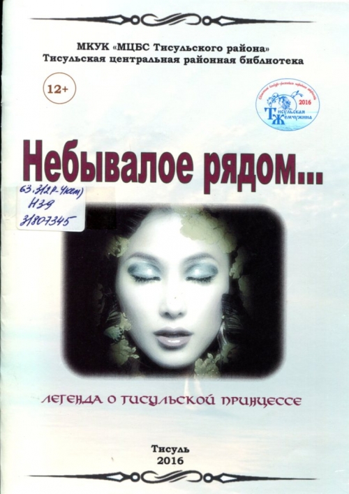 Небывалое рядом...: легенда о тисульской принцессе / МКУК "МЦБС Тисульского района", Тисульская центральная районная библиотека ; [сост. Т. В. Дубровина]. - п. Тисуль, Кемеровская область: [б. и.], 2016. – 23 с. ОТДЕЛ БИБЛИОТЕЧНОГО КРАЕВЕДЕНИЯ; Шифр 63.3(2Р-4Кем); Н39; 3/807345