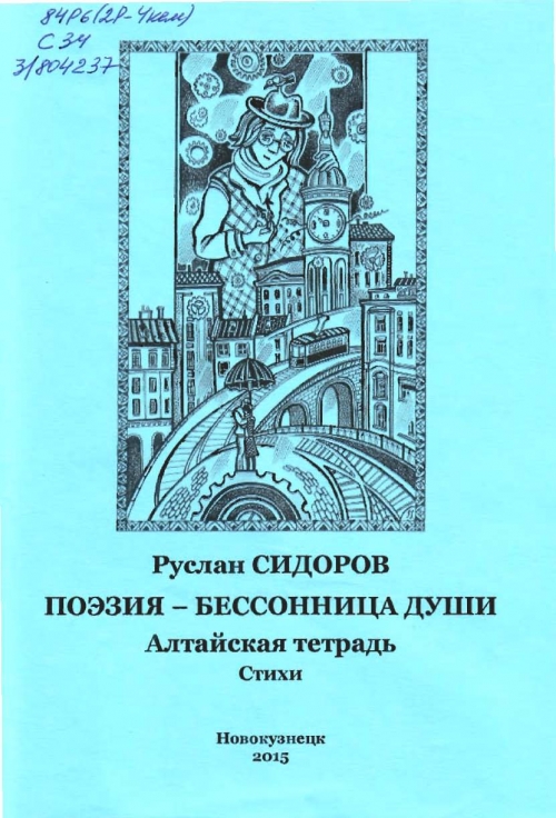 Сидоров, Р. Г. Поэзия - бессонница души : алтайская тетрадь: стихи [Текст] / Руслан Геннедьевич Сидоров ; сост. Сергей Гринберг, Центральная городская библиотека им. Н.В. Гоголя, Новокузнецкий городской клуб любителей фантастики "Контакт". - Новокузнецк, 2015. - 80 с. : ил.