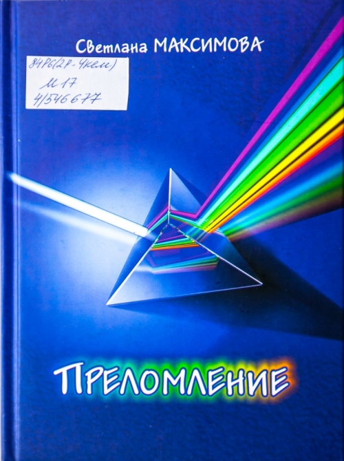 Максимова, С. А. Преломление / С. А. Максимова. - Кемерово: Кузбассвузиздат, 2016. – 238 с. - 18+ ОТДЕЛ БИБЛИОТЕЧНОГО КРАЕВЕДЕНИЯ; Шифр 84Р6(2Р-4Кем); М17; 4/546677 ОТДЕЛ ХРАНЕНИЯ ОСНОВНОГО ФОНДА. КРАЕВЕДЧЕСКИЙ ФОНД; Шифр 84Р6(2Р-4Кем); М17; 4/546678