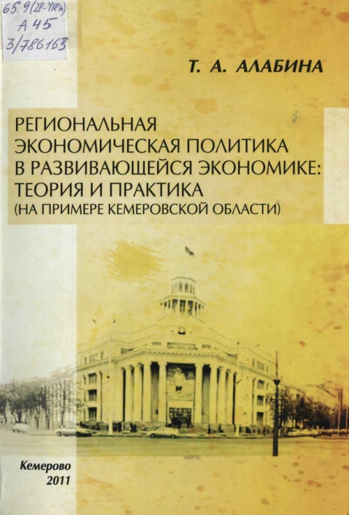Алабина, Т. А. Региональная экономическая политика в развивающейся экономике: теория и практика (на примере Кемеровской области) : [монография] / Т. А. Алабина ; [Кемеровский государственный университет]. – Кемерово : КемГУ, 2011. – 260 с. : ил.