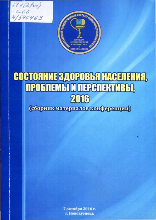 Состояние здоровья населения, проблемы и перспективы, 2016: (сборник материалов конференции): 7 октября 2016 г., г. Новокузнецк, межрегиональная научно-практическая конференция, посвященная 30-летию кафедры медицинской кибернетики и информатики НГИУВа и 40-летию КМИАЦ г. Новокузнецка / ГБОУ ДПО «НГИУВ» МЗ РФ; под общей редакцией Г.И. Чеченина, Н.М. Жилиной. - Новокузнецк: ГБОУ ДПО "НГИУВ", 2016. – 235 с. ОТДЕЛ ХРАНЕНИЯ ОСНОВНОГО ФОНДА. КРАЕВЕДЧЕСКИЙ ФОНД; Шифр 51.1(2Рос); С66; 4/546463; 4/546462